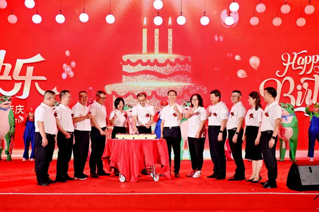 慶典終章在歡騰中綻放,全體中自人齊唱生日歌慶祝中自科技20歲生日快樂!